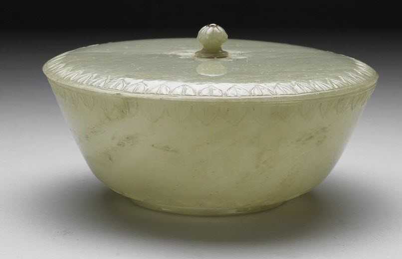 清青玉蓋碗(蒙兀兒帝國(guó)葉紋帶蓋圓碗)