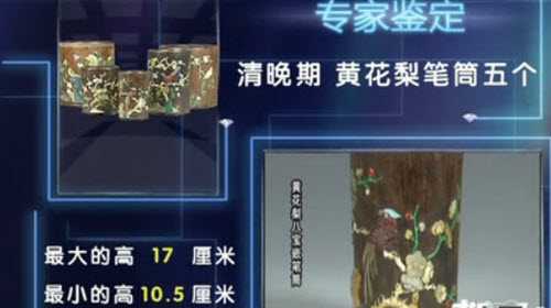 第3件寶物:清晚期黃花梨八寶嵌筆筒(五個(gè))